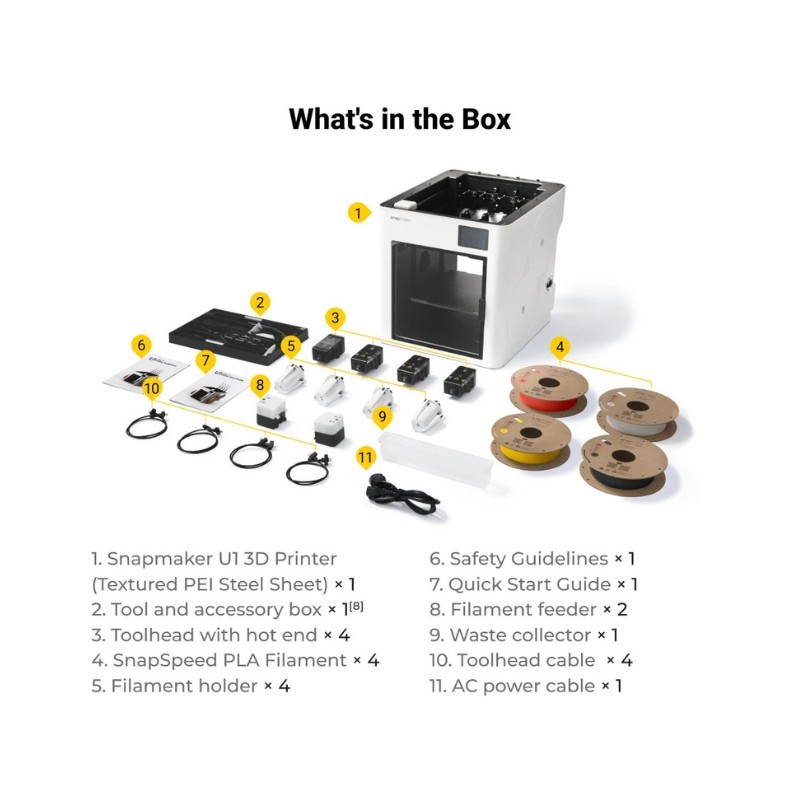 The Snapmaker U1 redefines productivity in multi-material and multi-color 3D printing. Designed for professionals and serious makers, it combines advanced automation, high speed, and precision to streamline your workflow from concept to completion.