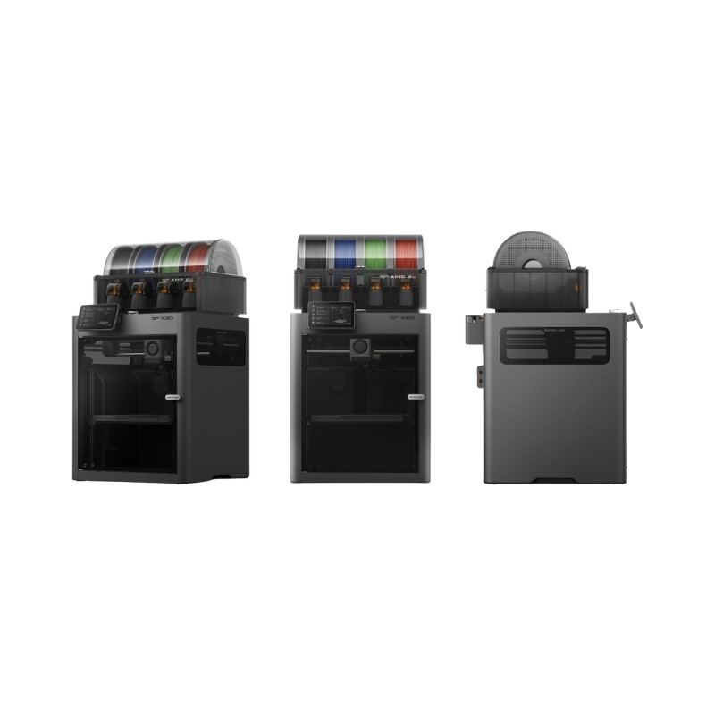 The included AMS 2 Pro automatically manages up to four filament spools. It handles material switching, detects filament types, and maintains optimal storage conditions with integrated drying. This enables seamless multi-color and multi-material printing without manual intervention.