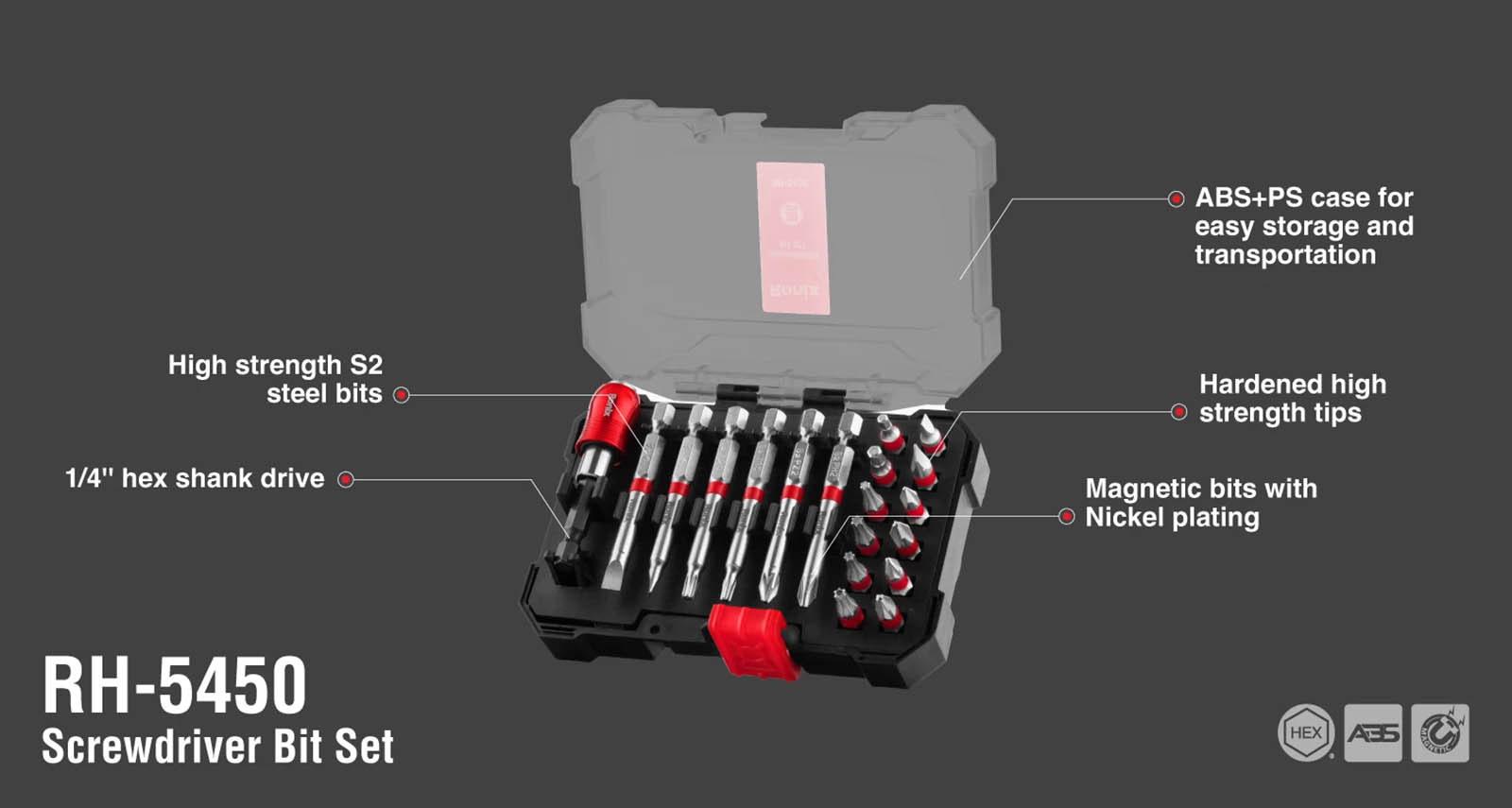 Ronix Rh-5450 screwdriver bit set is a handy and functional accessory that comes with your help in many screw-driving tasks. The collection contains 19 pieces of screwdriver bits with S2 steel material.