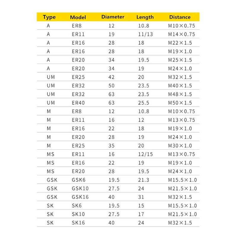 Excellent clamping force, Widely used in boring, milling, drilling, tapping, grinding, engraving, etc.