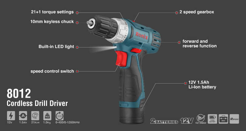 At a glance, the Ronix 8012 12V Cordless Drill Driver is one of our most convenient tools among all our other cordless drills, with a screwing function with all the characteristics you expect for your everyday needs. Compared to leading brands in the market, this model’s competitive advantages are its reasonable price, compact design, and multiple performances, making it a suitable choice for operators with different skills at job sites or home. Get it done without concern.