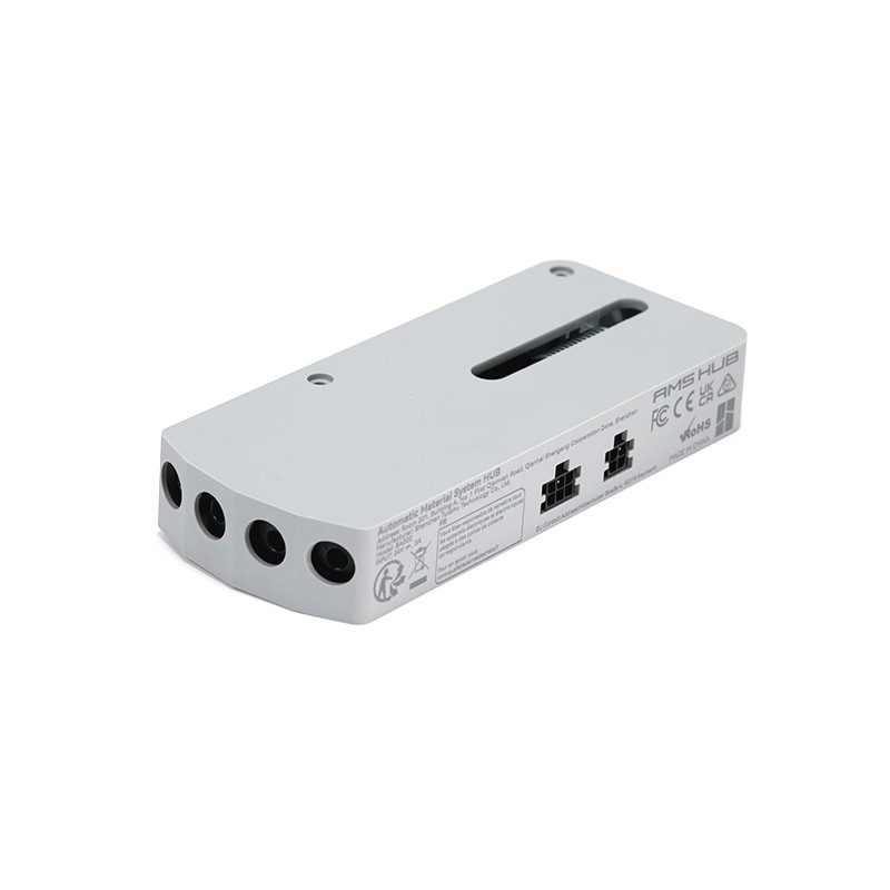 The AMS Hub is used to expand the number of AMS connected to Bambu X1/P1 series printers from 1 AMS unit (4 channels) to a maximum of 4 AMS units (16 channels) to improve the refueling speed across your multiple AMS units and support the redundancy of a buffered signal.