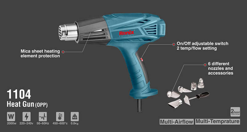 Heat guns are pretty versatile tools and can be a great addition to your tool arsenal. It can be used in several DIY projects like making embossed patterns, melting crayons, and even for culinary creations and much more. Ronix 1104 Industrial Heat Gun is an ergonomic handheld device that blows hot air in 2 airflow speeds ranging from 450-600 ℃. They're commonly used in removing flaking paint and shrinking tubs. This product never stops wondering the users about the things it could do. The powerful 2000W motor provides adequate power and helps the device to quickly heat up to 600℃ in few seconds. More detailed information is provided in “Detailed Description” if necessary.