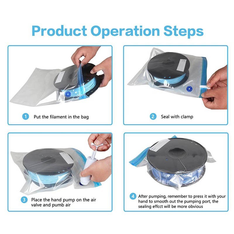 PETG bags are rated for up to 105°C – suitable for storing PLA, ABS, TPU, PETG, and more.
