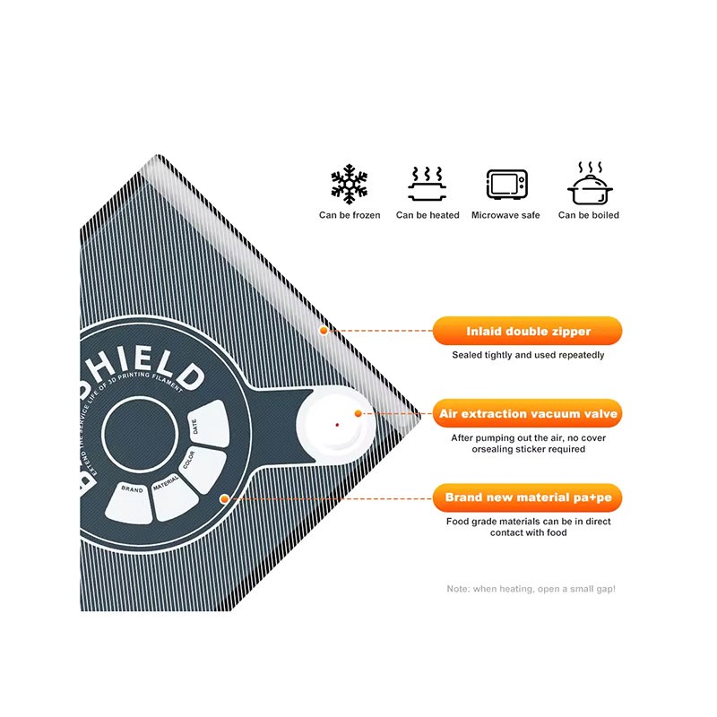 Bags are rated for up to 105°C – suitable for storing PLA, ABS, TPU, PETG, and more.