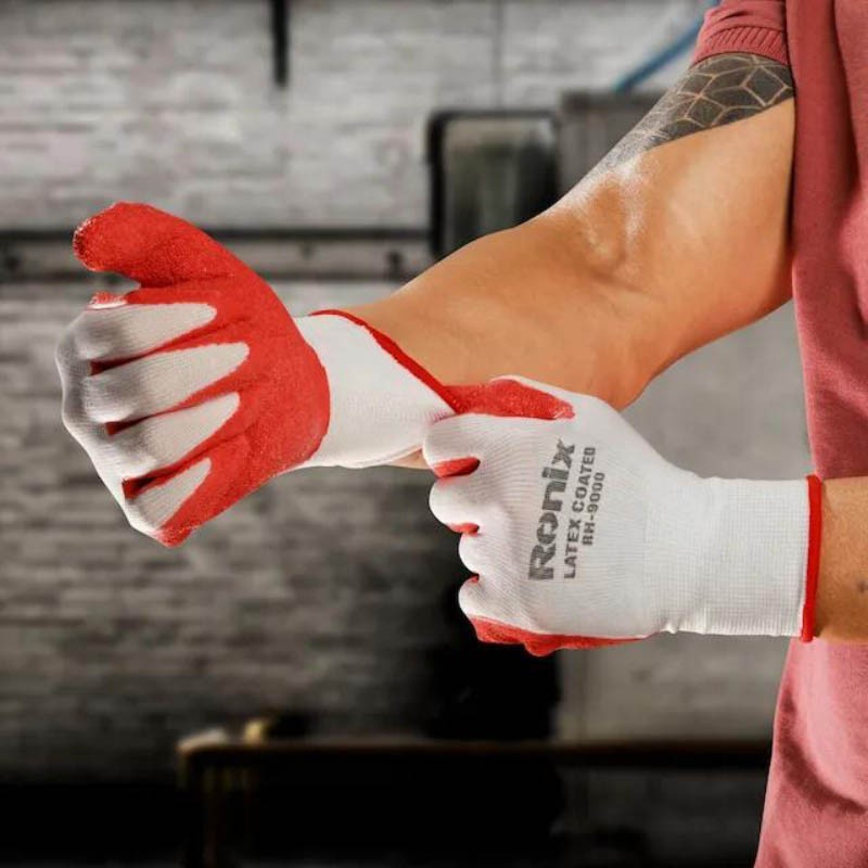 Ronix Latex-Coated Work Gloves use high-quality raw materials and five-yarn fibers to be applicable for gardening and light industrial applications. These highly elastic and durable gloves are resistant to abrasion, shear, tear, and also puncture. The anti-slip and elastic knitted head sleeves and wrist cuff of Ronix Latex-Coated Work Gloves make it very easy to pull them on and off quickly. It is so important to remember that these high-quality gloves are washable; so, they are ideal for everyday use.