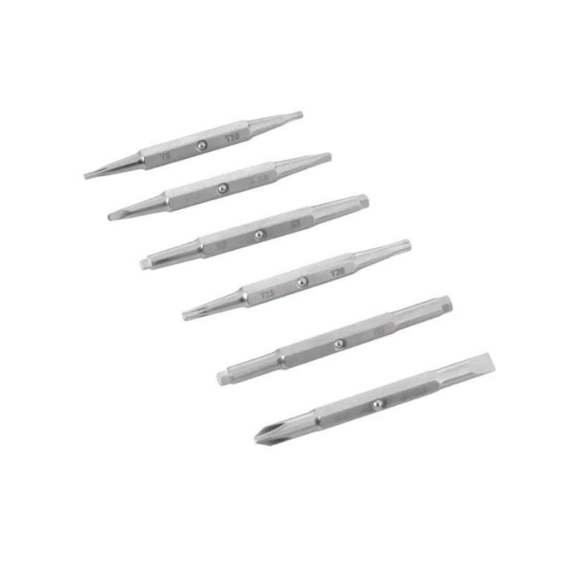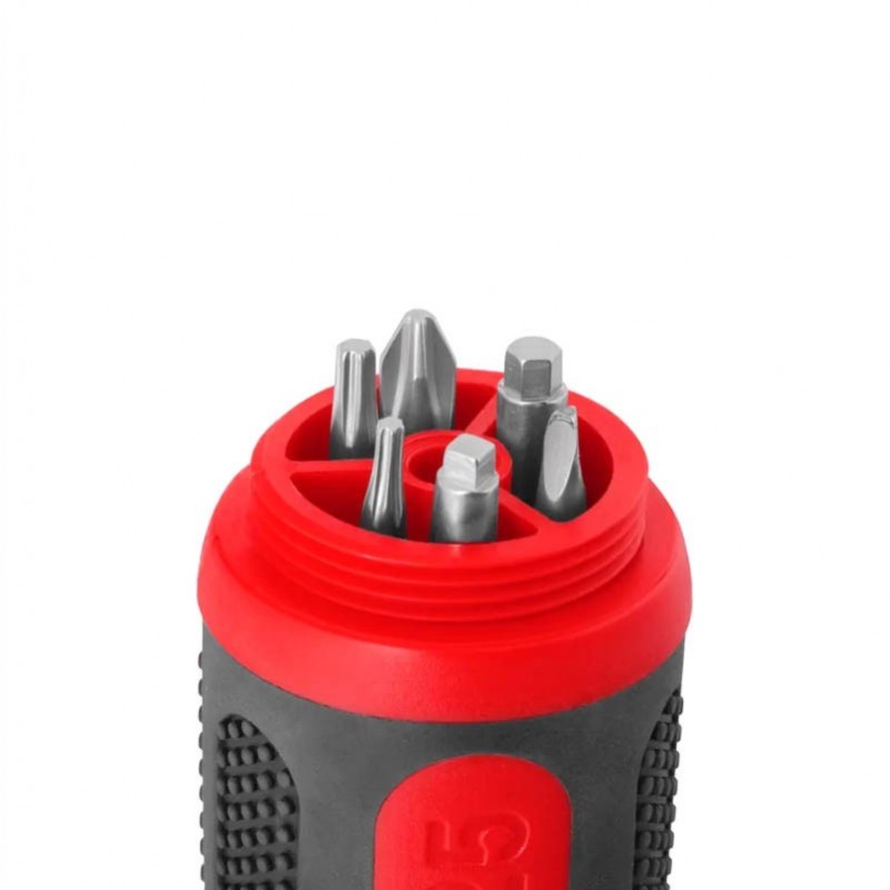 A ratchet screwdriver set typically includes a ratcheting handle and some interchangeable bits of various sizes and types in Phillips, slotted, Torx, etc. These screwdrivers allow users to easily and quickly switch between different bits to handle different screw types and sizes at any moment. The ratcheting mechanism also allows for quick rotation of the screwdriver without having to remove and reposition the screwdriver after each turn, making it a great tool for tasks that require repetitive movements. Ronix RH-2725 is such a screwdriver that contains the most common screw bits. These bits are made from S2 steel and come in various sizes to accommodate any situation.
