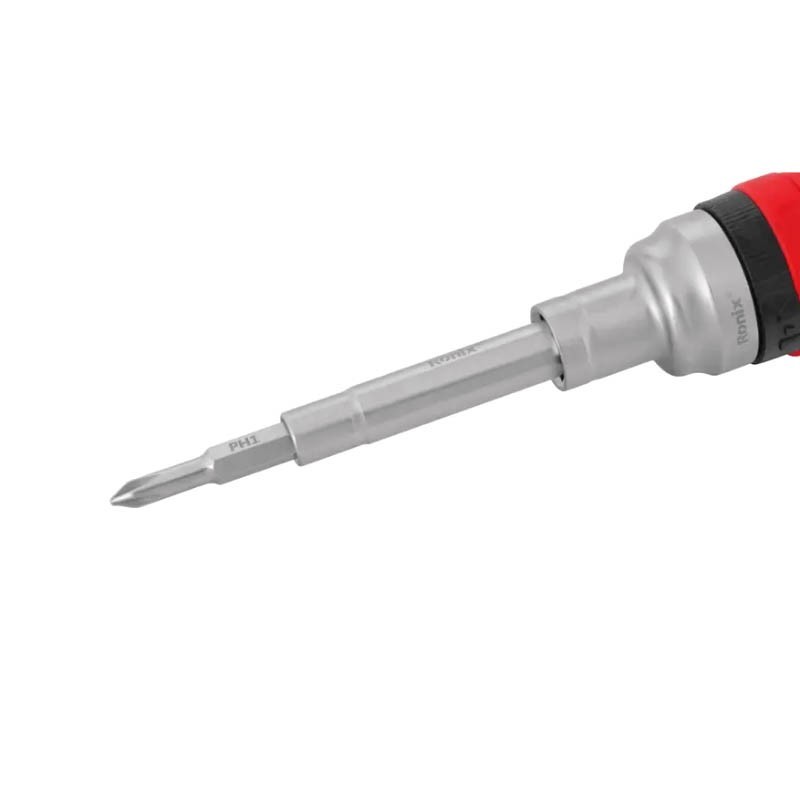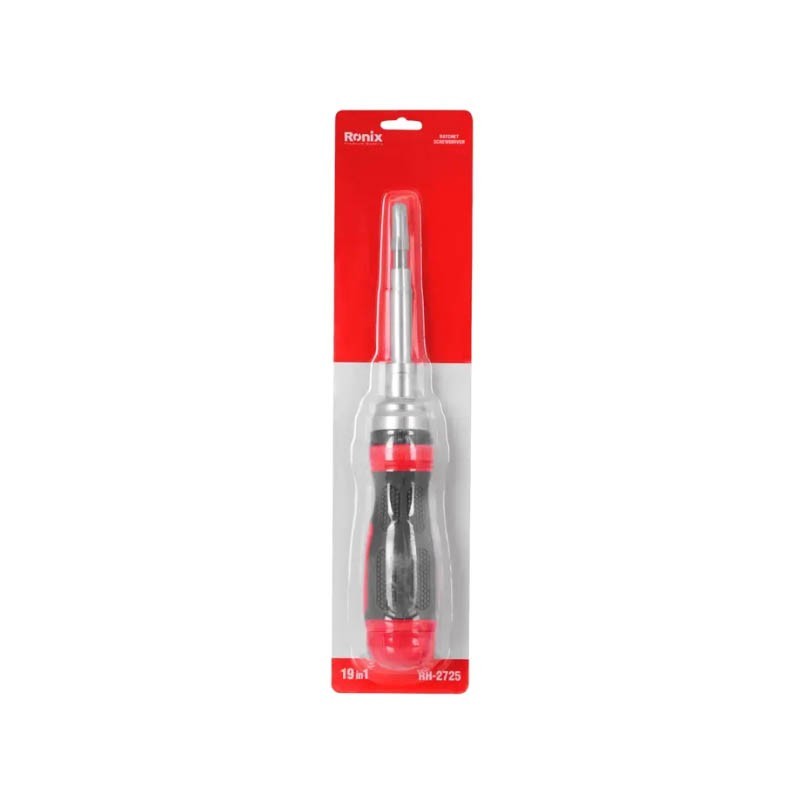 Ronix RH-2725 is a ratchet screwdriver set that includes a ratcheting handle in addition to different double-bits, offering various screw types in one set.