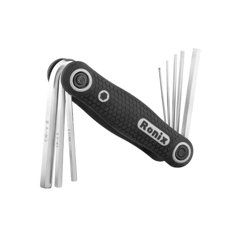 -8-piece folding hex key set for quickly tightening or loosening fasteners